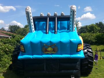 Our monster truck slide combo is an eye catching, incredibly impressive inflatable sure to get your party bouncing! A twist on the standard slide bouncy castle - this bouncy castle slide combo has everything to entertain Monster Truck fans for hours!