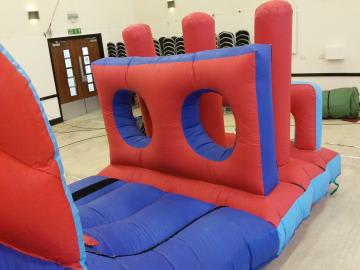 A Bish Bash Pillar Obstacle course ideal for any party or event! Jump on and bash your way through the pillars, then climb up and over the 6 foot slide. An exhilerating fun obstacle course guaranteed to entertain the kids! A very popular obstacle course ideal for indoors or outdoors.