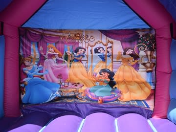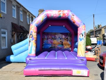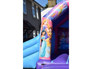 Experience regal joy with our Disney Princess Bouncy Castle, featuring a magical slide for enchanting adventures that let little princesses bounce into a fairy-tale realm of dreams